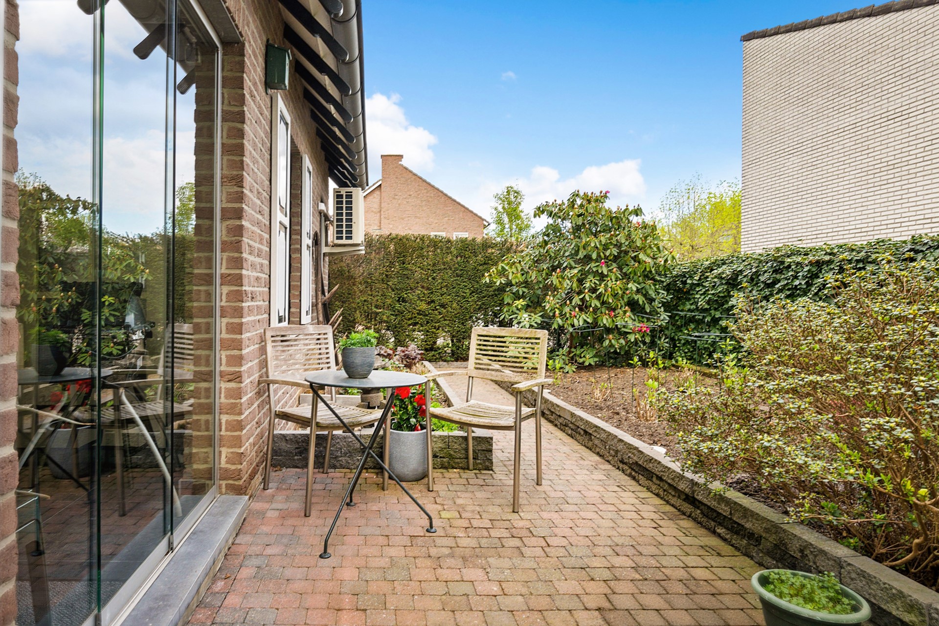 Rondom de woning bevindt zich een mooi aangelegde en volgroeide tuin met volledige privacy.