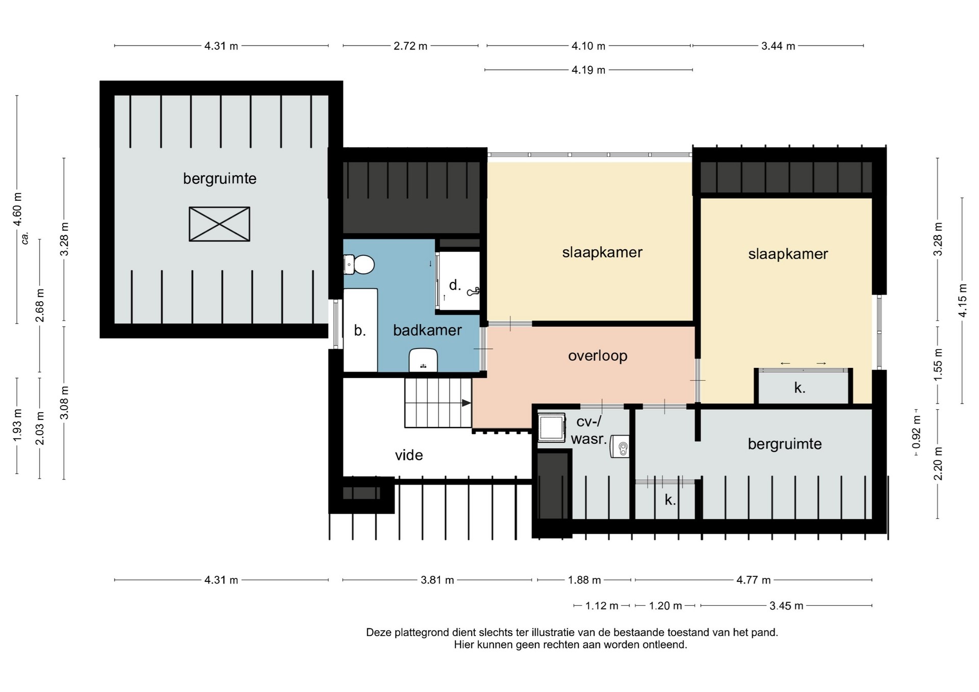 Riante slaapkamer (momenteel in gebruik als hobby-/werkruimte). Middels een vlizotrap boven de slaapkamer is een ruime berging toegankelijk. De naastgelegen ruimte die momenteel in gebruik is als werkkamer zou ook kunnen dienen als badkamer.