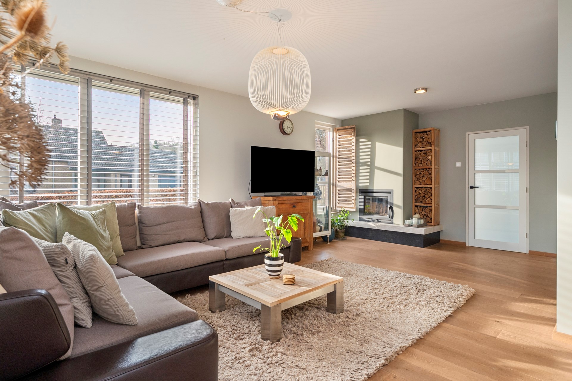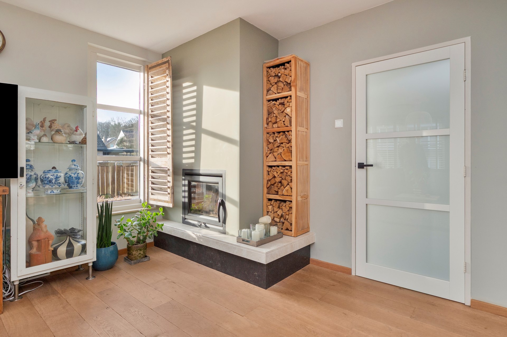 Sfeervolle woon/eetkamer met als eyecatcher de open haard. In de woonkamer is een airco-unit aanwezig. In het verlengde van de woonkamer bevindt zich de tuinkamer die gekenmerkt wordt door veel lichtinval en waar het heerlijk vertoeven is.
