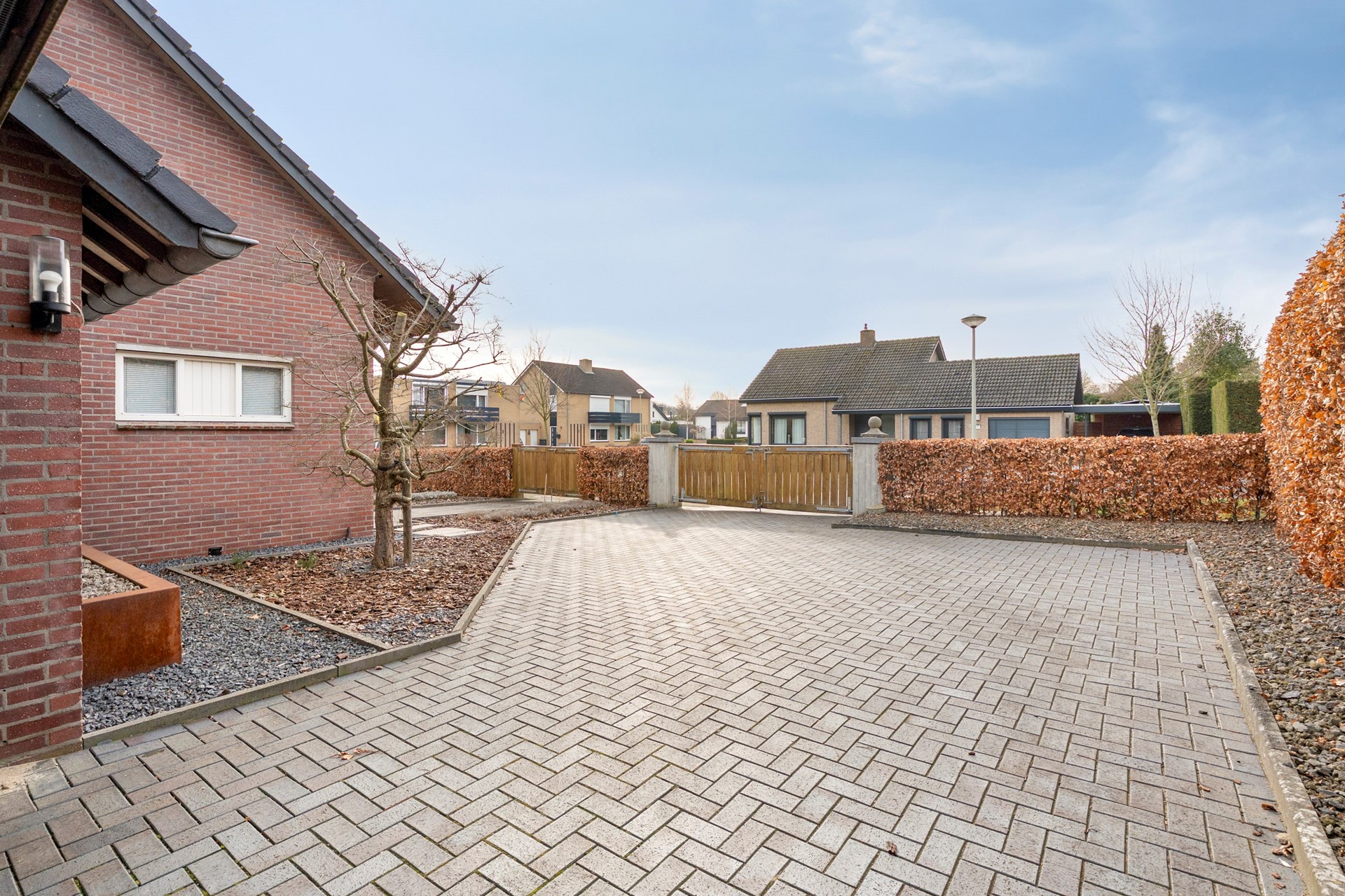 De tuin is grotendeels betegeld en voorzien van een overdekt terras en diverse borders met beplanting. In de tuin bevindt zich een separate houten berging. Naast de woning bevindt zich een oprit welke plaats biedt voor meerdere voertuigen. Ook is deze voorzien van een carport.