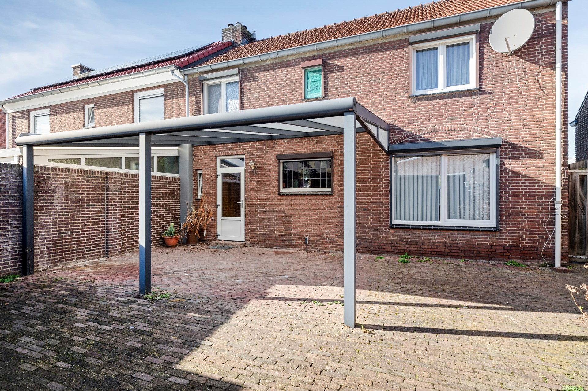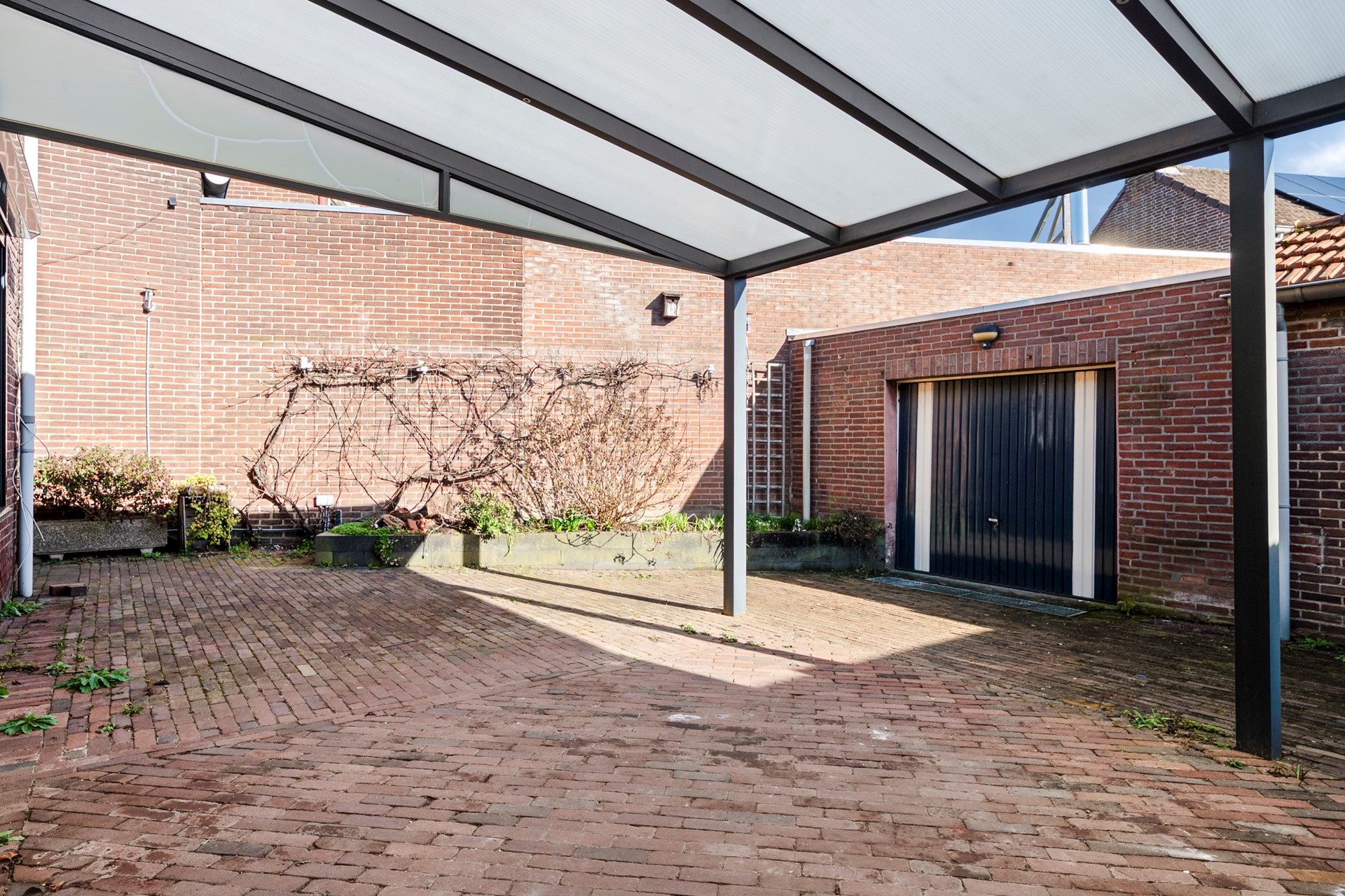 De tuin is voornamelijk met klinkerverharding aangelegd met een kleine border met enkele vaste planten. Op het terras is een redelijk nieuwe overkapping (2016) geplaatst.