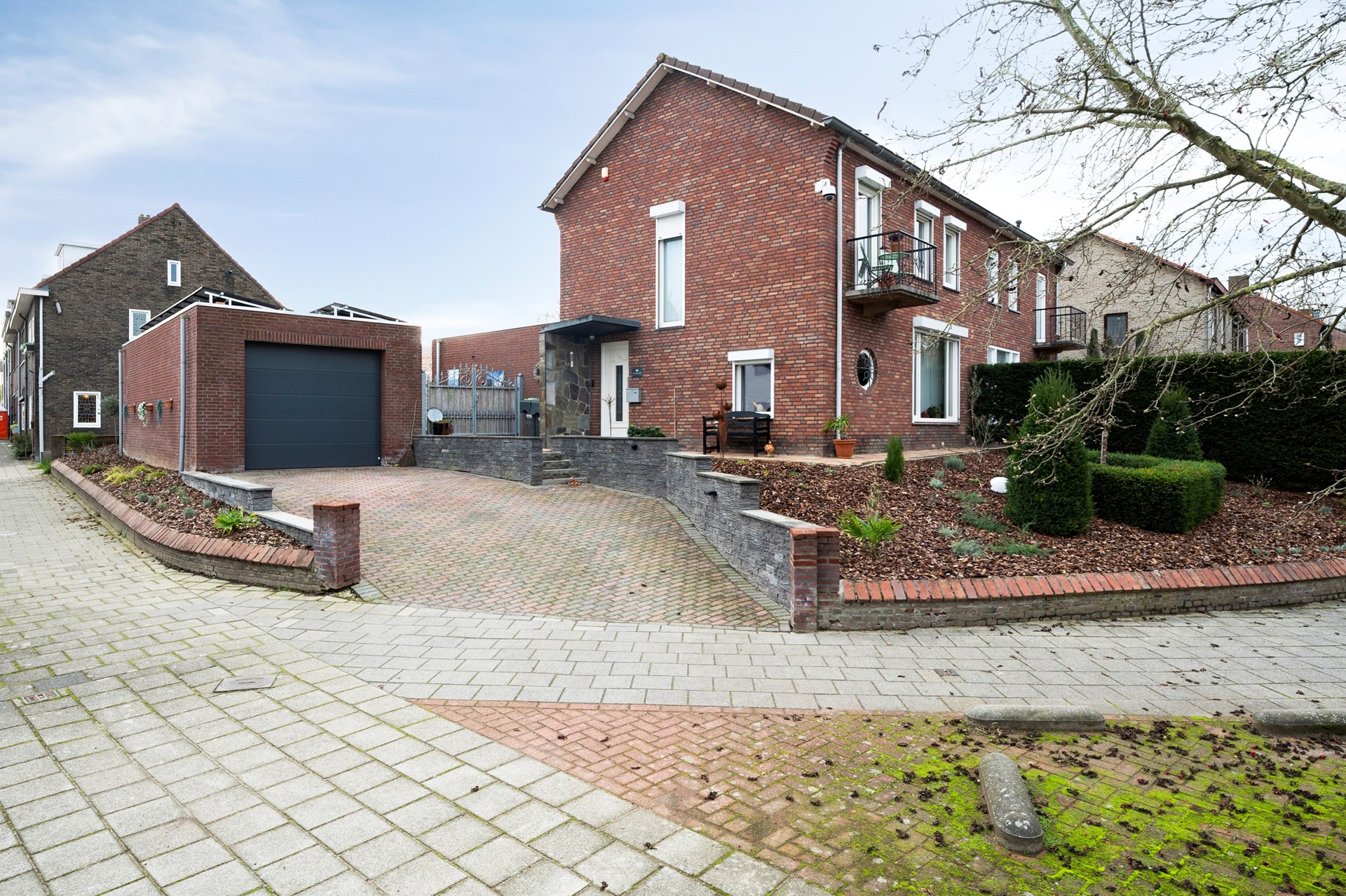 Vanuit de tuin is er toegang tot de ruime garage. De garage is voorzien van een sectionaalpoort en aan de voorzijde is een oprit gelegen.