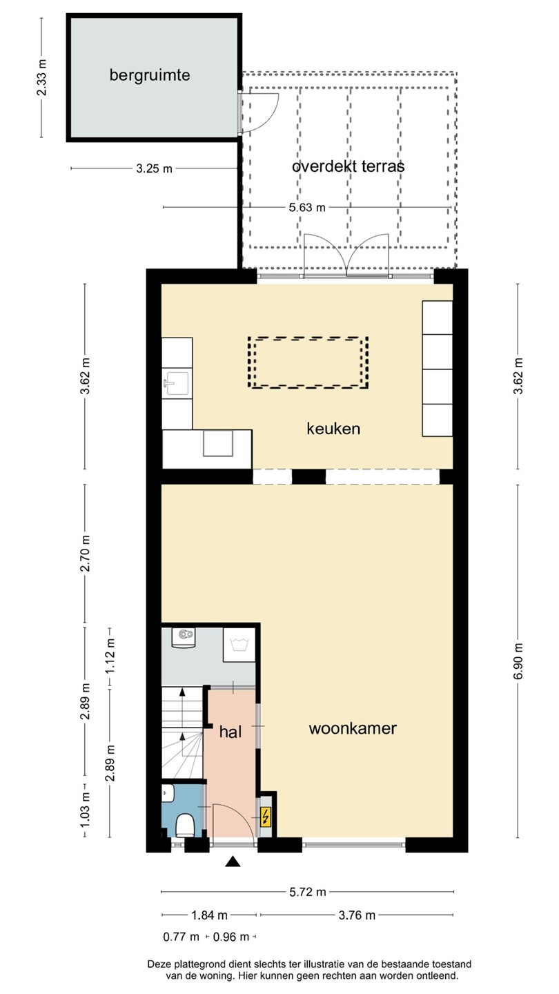 Hal/entree, meterkast, toilet met fonteintje en was/provisieruimte.