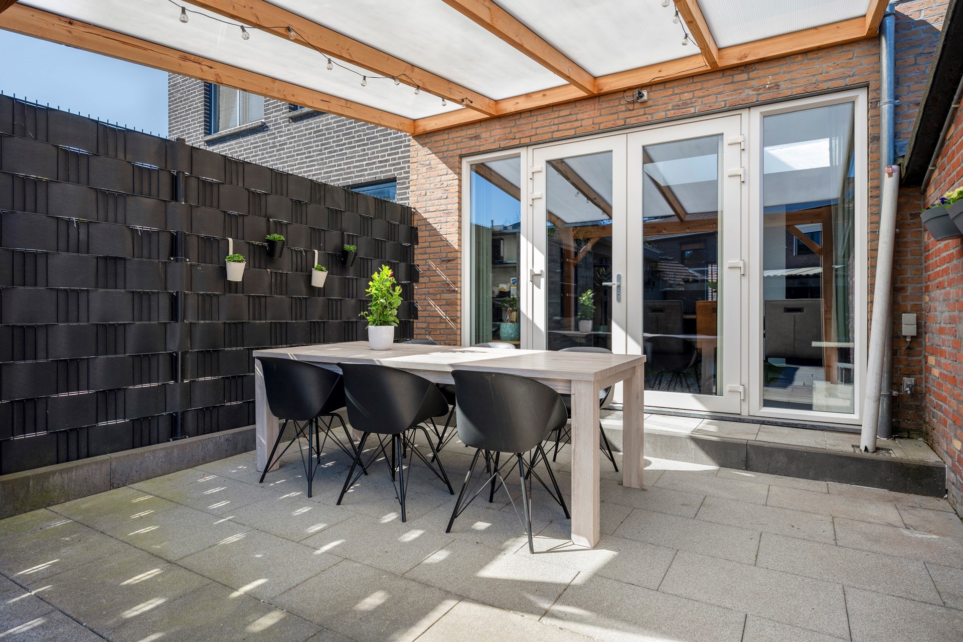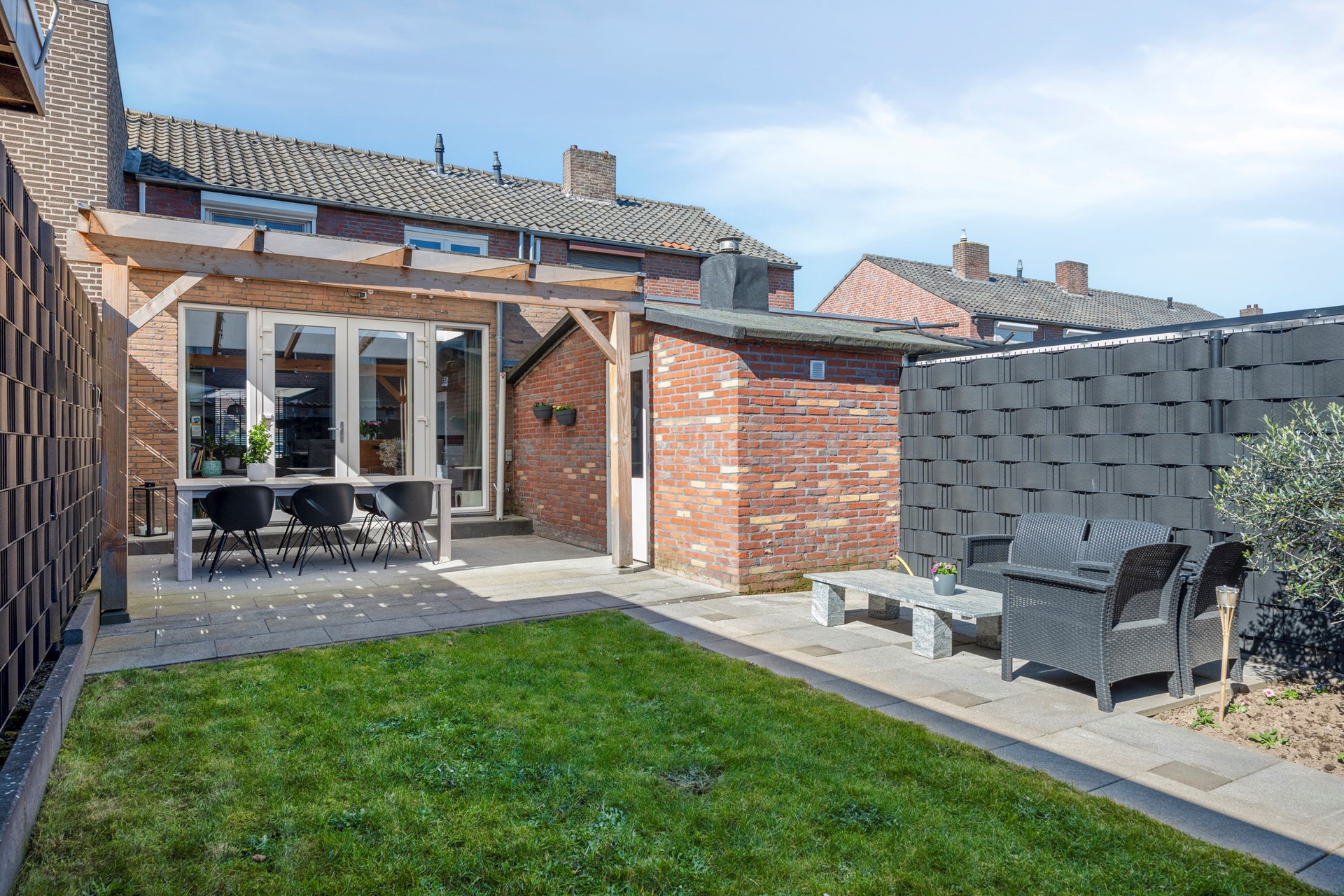 Geheel omsloten tuin welke voorzien is van een sfeervol overdekt terras.