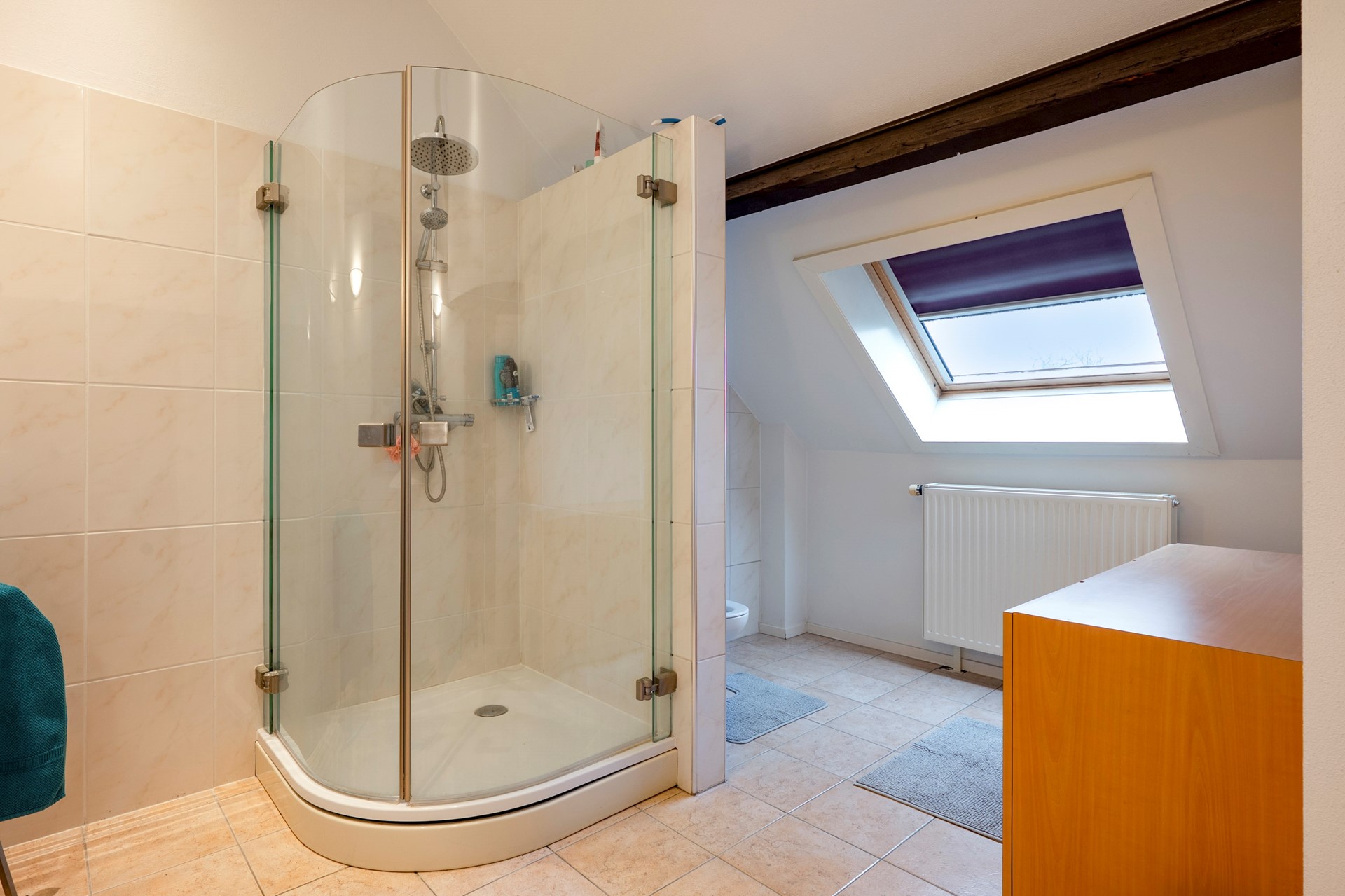 Deze is opgedeeld in een overloop, cv-ruimte, een zeer riante 4e slaapkamer en een badkamer met douche, wastafel en toilet.